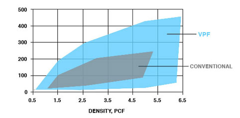 The proprietary VPF™ process is used in the creation of a variety of foam products with unique and precisely defined physical characteristics. The process is considered environmentally friendly based on the use of an enclosed chamber to control the foam pouring conditions and it does not require the use of hazardous air pollutant auxiliary blowing agents (ABAs) to manufacture the full range of polyurethane foam products. The pouring of foam in an enclosed chamber also provides the means for collection of virtually all of the process emissions into carbon beds.